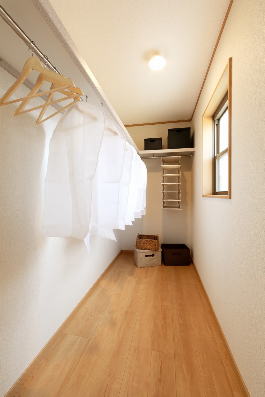 毎日の「いってらっしゃい」と「ただいま」がうれしいリビング階段採用。キッチンからリビング・ダイニング~和室まで、スッキリとママの目線が行き届く設計に。ウォークインクローゼットや玄関収納、小屋根裏収納など収納スペースも豊富。洗濯物の整理やちょっとしたデスクワークなどにも使えるカウンター付きの洗面室はとっても便利。