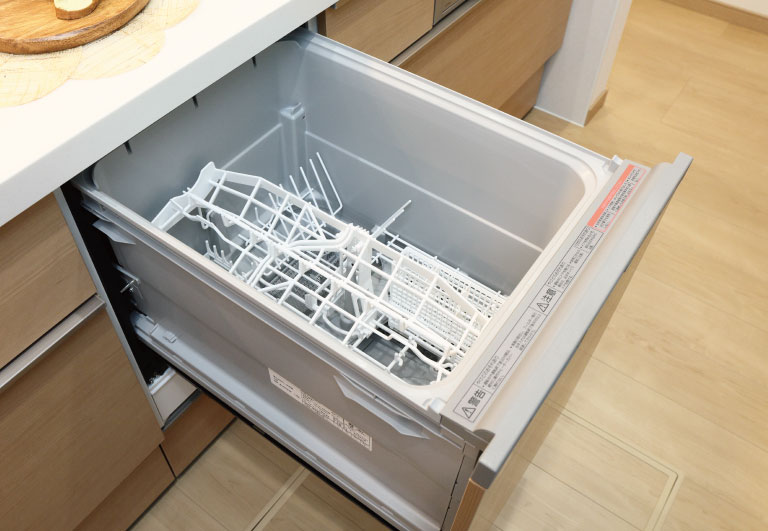 大容量で多くの食器を一気に洗えるので節水効果も。