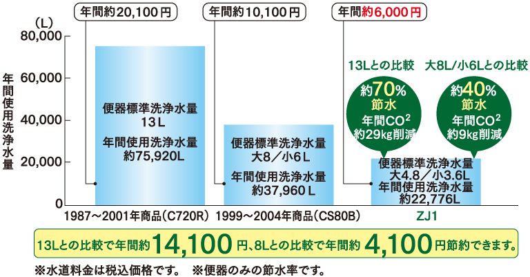 大幅に水の使用量を抑えて経済的な