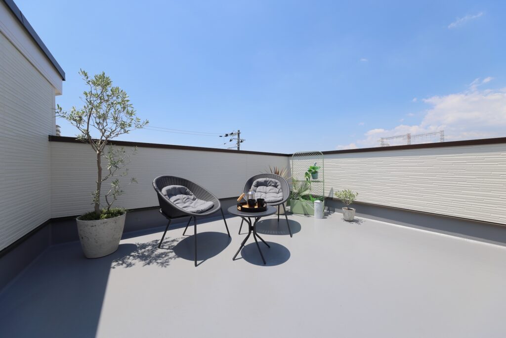 このお家の自慢の空間が、この広々とした9.25帖のルーフバルコニーよ!周りは2階建てのお家が多いエリアだから、3階部分にあるここからの眺めは最高♪