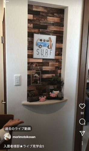 森本興産では、定期的にインスタライブでお客さまのお家を紹介しているんだけど、今回の投稿はそのインスタライブの中から切り抜きで紹介するわ♪