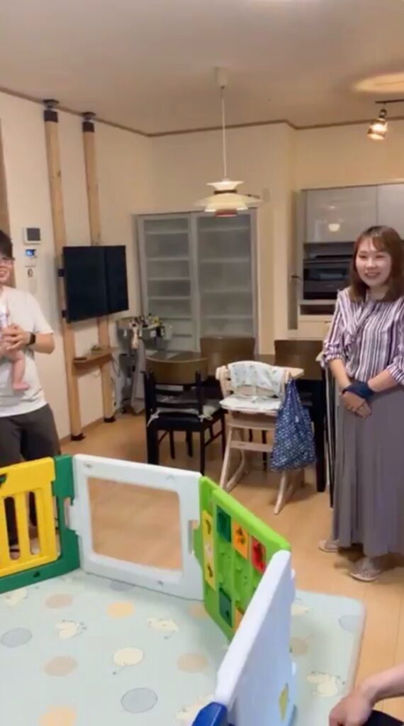 リビングに入ると、真ん中にはお子さんが遊べるプレイスペースが広がっていたわ。
